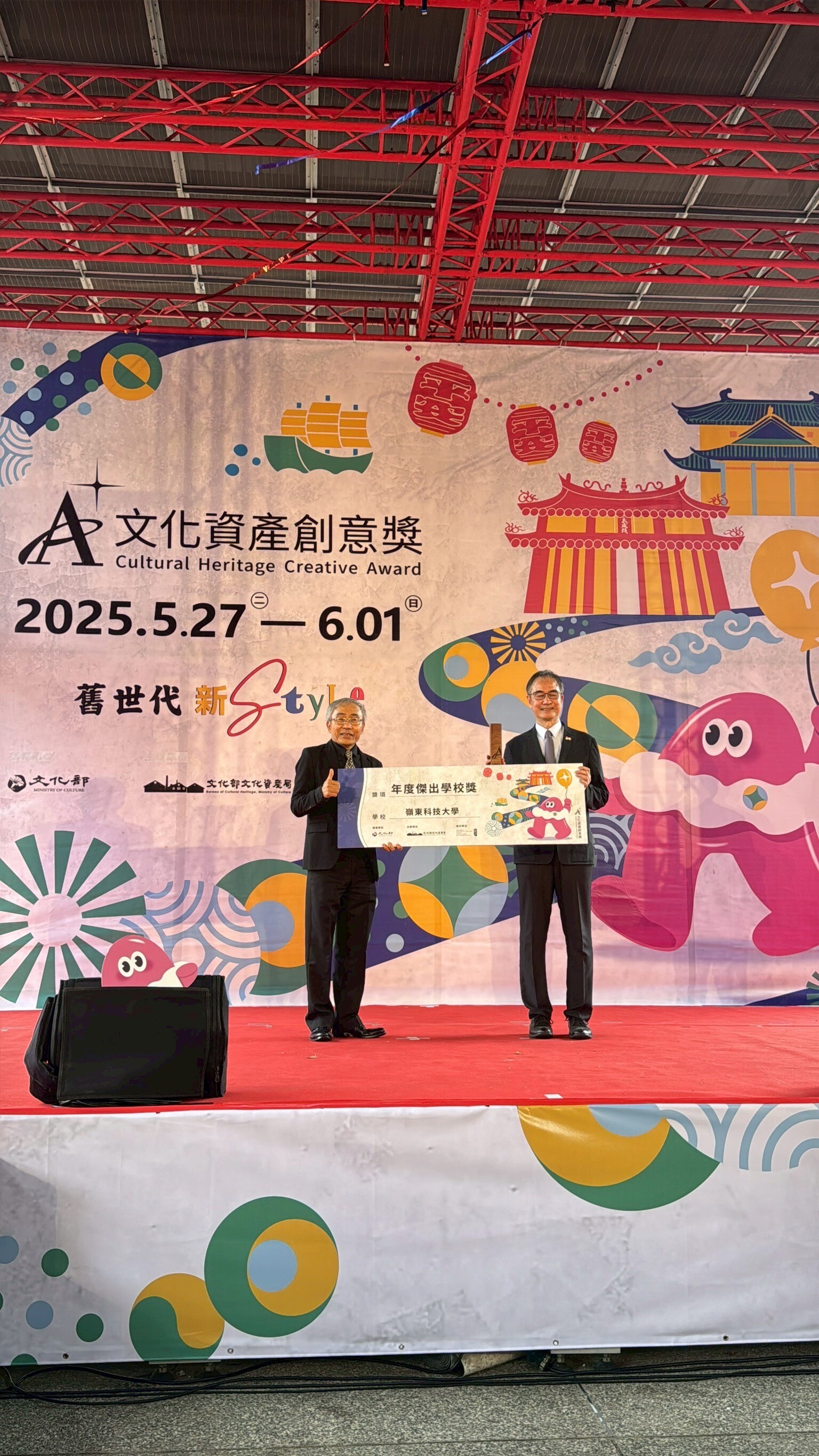 ▲A+頒獎典禮開幕活動 嶺東科技大學不愧是全國設計最強科大, 2025 A+文資創意競賽頒獎典禮上, 再度大放異彩,連續3年奪得全場唯一「年度傑出學校」 今年更加碼榮獲「年度展場設計獎」