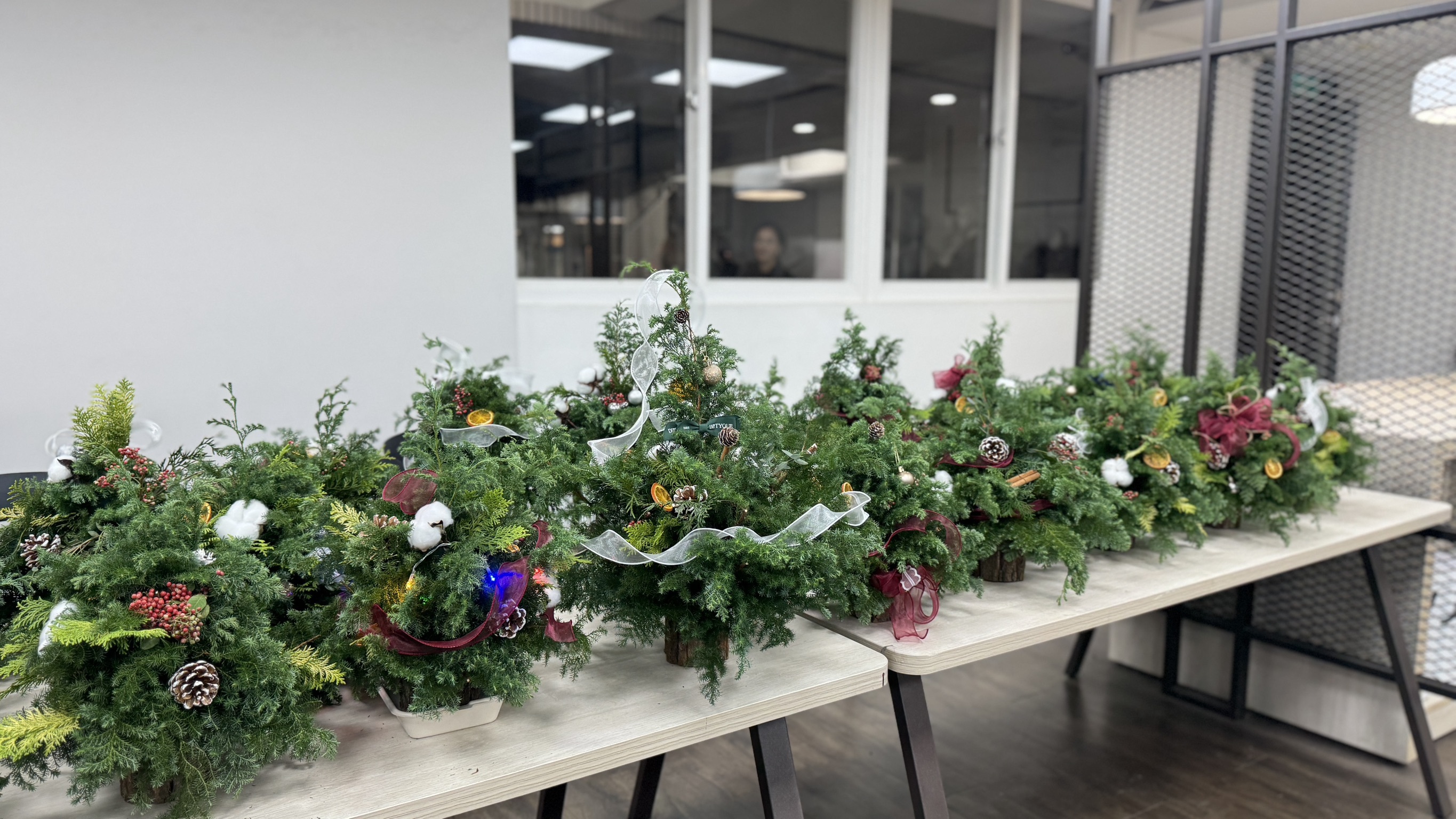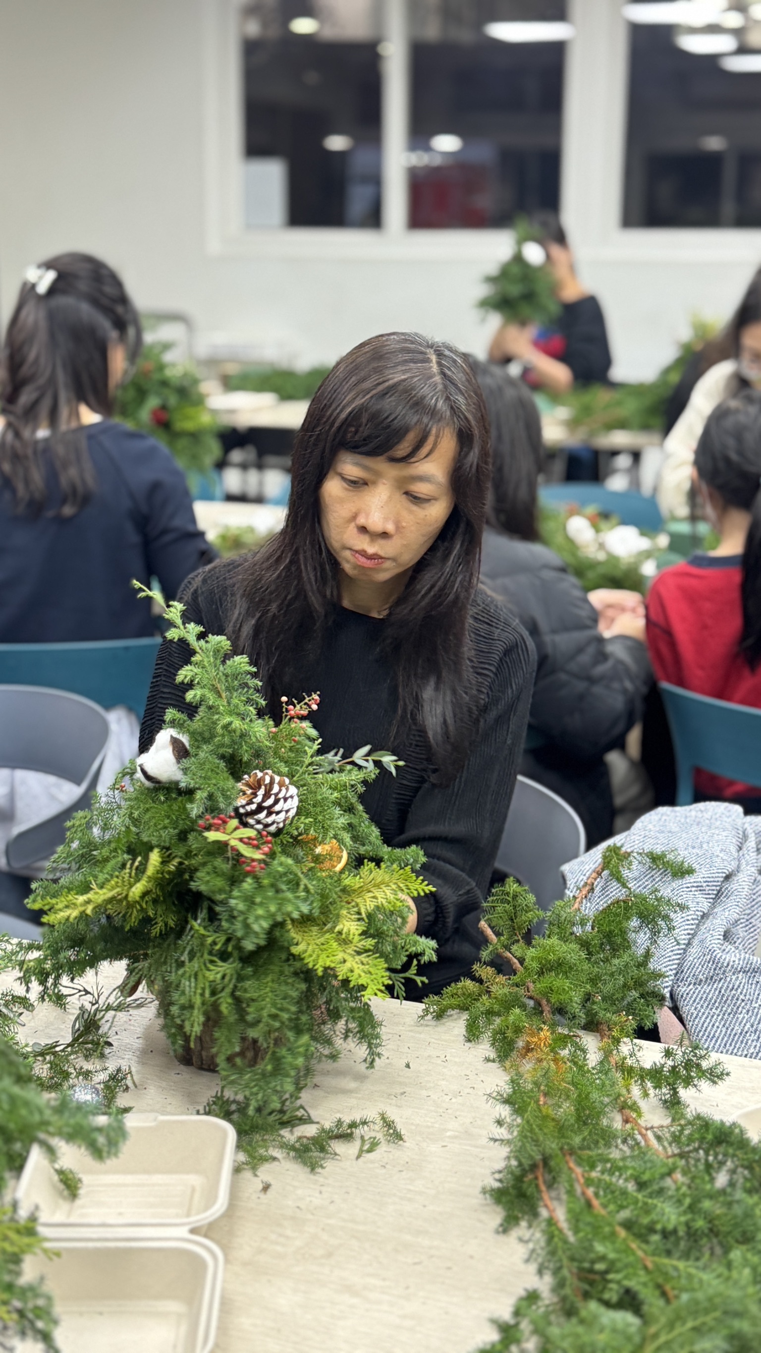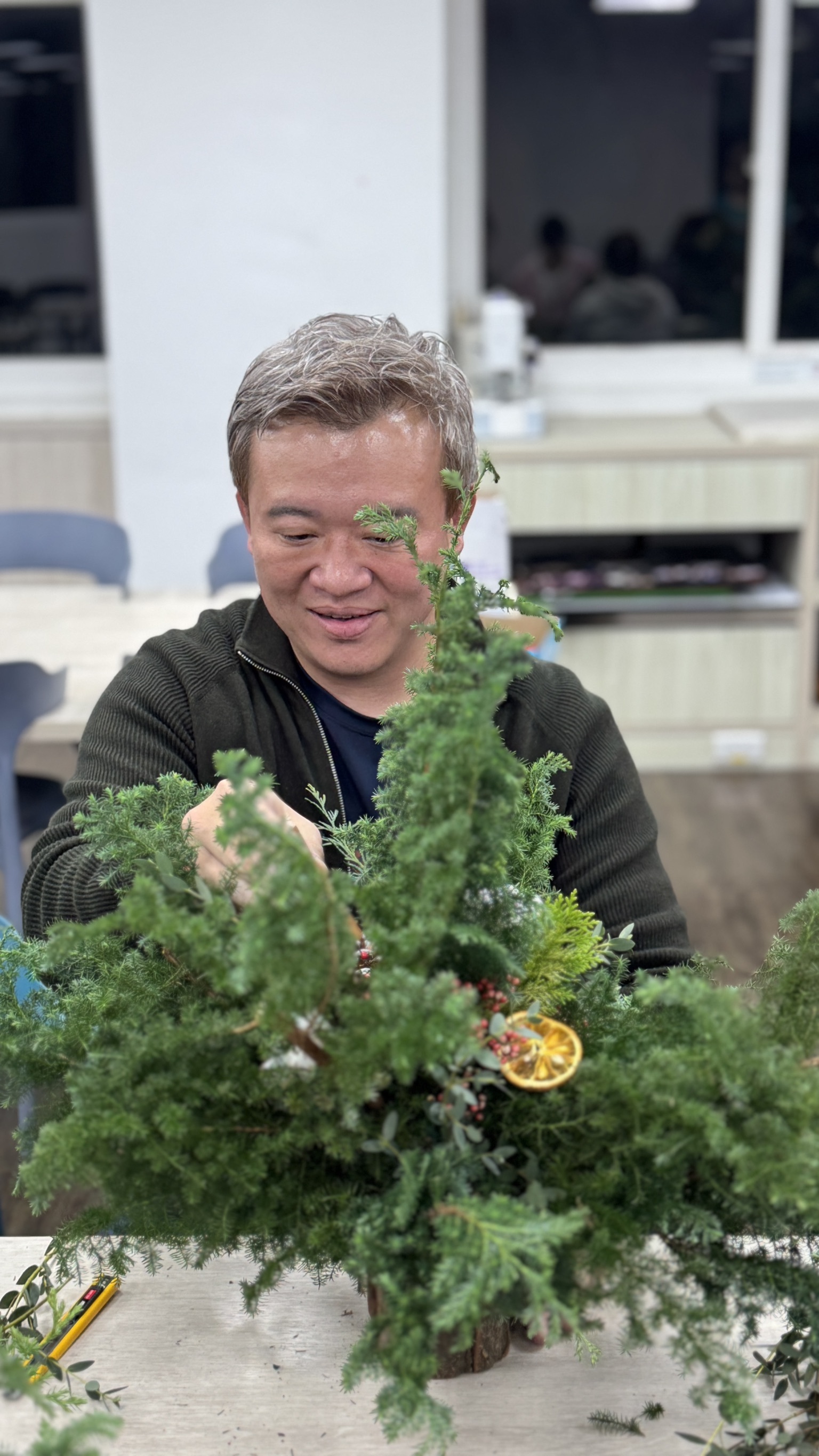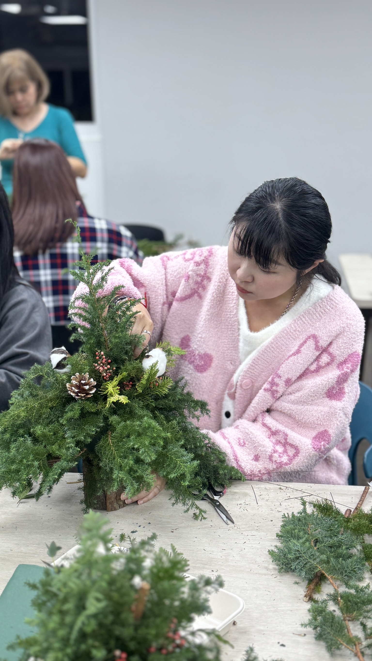 ▲ 聖誕樹素材們 (雪松、扁柏、蘋果銨、胡椒果、松果、棉花、肉桂、吊飾們)